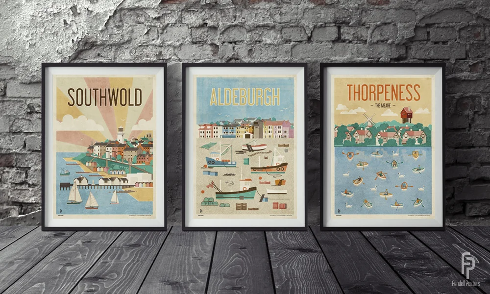 For the first time Fendell Posters has ventured outside Essex for an exciting brand new Suffolk set of designs. I am still working on expanding my local posters featuring familiar landmarks and towns around Essex, but inspired by my parents recent move to Suffolk, I couldn't help myself but include this idyllic stretch of English coastline.