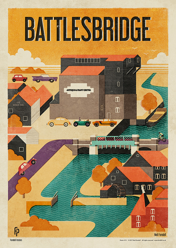 This is Fendell Posters 20th poster! I have been experimenting with some new techniques in creating it, and as a result, it has a much more handcrafted feel. I have introduced a new colour palette for this design, but as with all my posters, it works well alongside any of my previous designs.